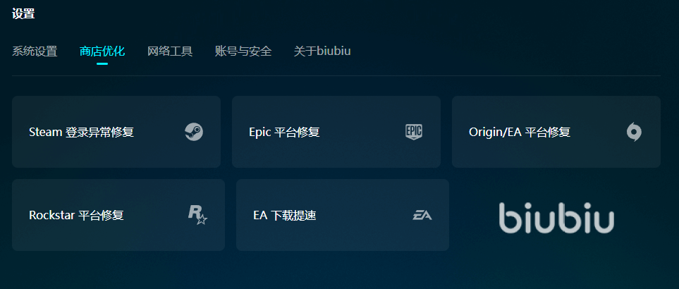 當玩家無法登錄游戲平臺或者對加速效果不太滿意,都可以使用商店優(yōu)化或者是系統(tǒng)工具來修復(fù)故障。這些工具和功能都是免費使用的,一個biubiu解決多種游戲網(wǎng)絡(luò)難題,真是太全面了。