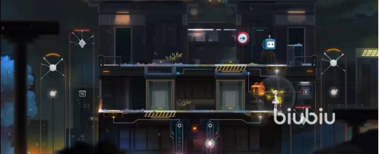 首先是紅色和黃色的光。在主角的周圍,她可以用自己的身體作為光源,但是在使用光源的時(shí)候,卻會(huì)被這個(gè)圓圈所束縛。一盞黃色的燈可以照亮一盞路燈,而黃色的燈光則是層層疊疊的,當(dāng)小女孩接觸到一盞路燈的時(shí)候,就會(huì)用黃光將其點(diǎn)燃,就像是一條線路。