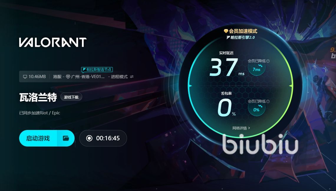 對于瓦洛蘭特所提供的加速效果也是特別好的,而且還為大家準備了特色的福利,比如新人的第一次使用是可以領(lǐng)取到24h加速時長,通過截圖可以看到國服的無畏契約是開啟了限免加速服務,想要免費體驗海外服的話直接輸入【biubiu不卡頓】既可以得到72小時的加速時間,但是一定要記得這句口令是小寫的。