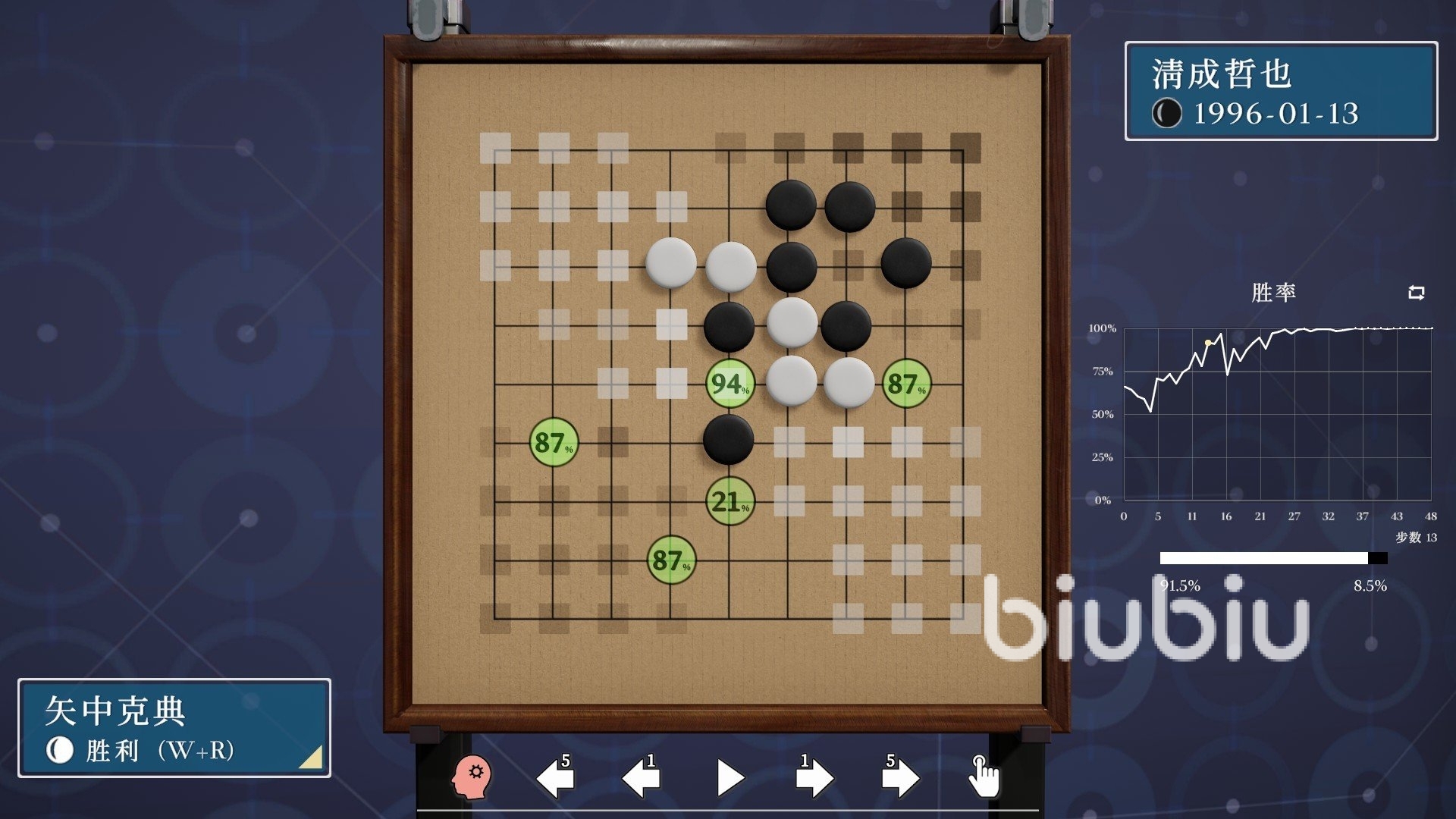游戲最主要的玩法依然是和AI進行對弈,在圍棋方面AI的智能相當高,一共有30個適合不同水平玩家選擇的難度級別。通過從易到難的方式逐漸鍛煉自己的技術(shù)。如果覺得AI太難,也可以在線和其他用戶進行對戰(zhàn)。