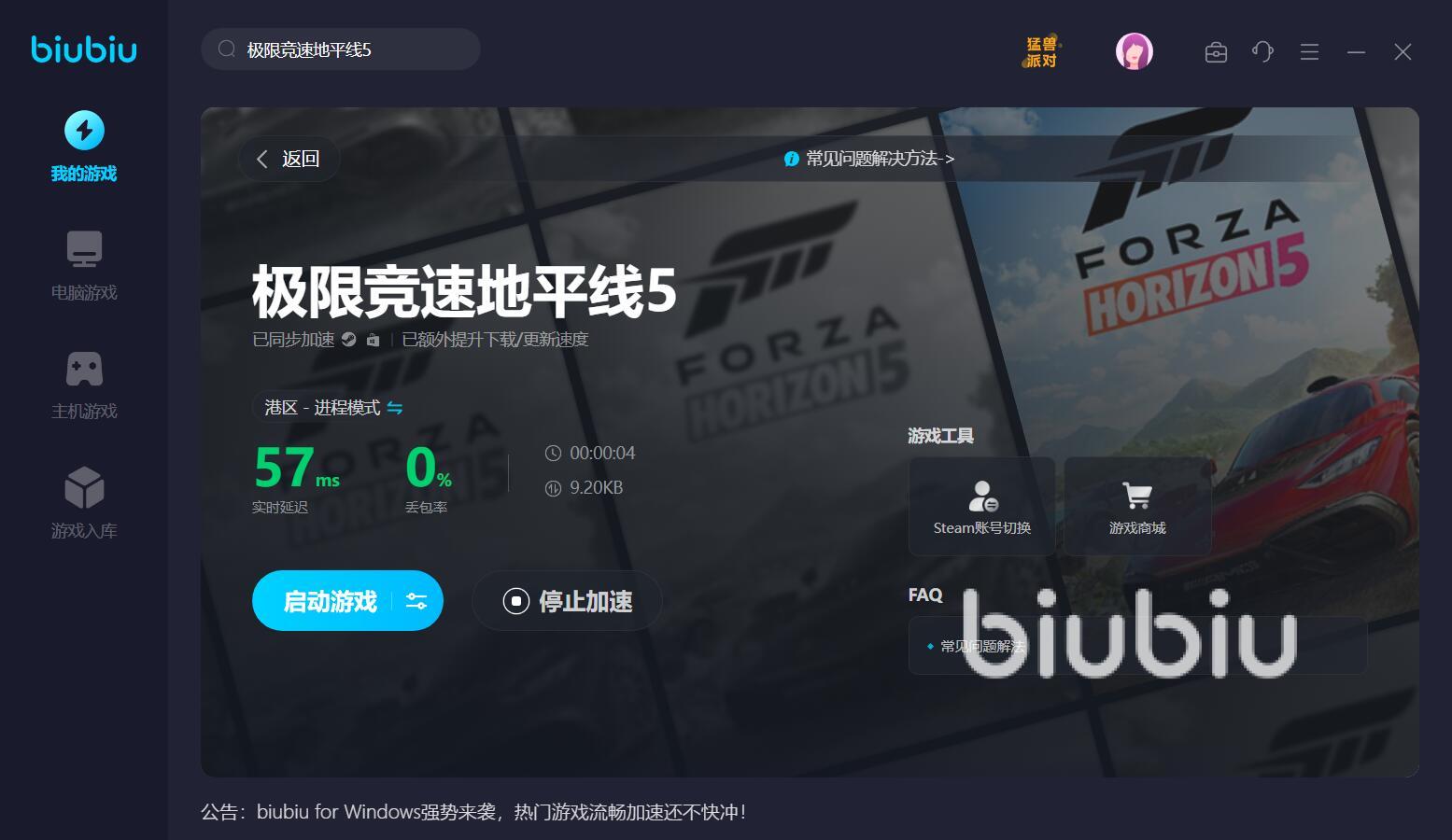 以上就是地平線5打開就閃退怎么辦,閃退其實(shí)一個(gè)很常見的現(xiàn)象,遇到了不用慌,可以先查查自己電腦的硬件參數(shù),看看是不是符合官方的最低要求,滿足的話,那么就是網(wǎng)絡(luò)出了問題,這時(shí),用biubiu加速器去改善網(wǎng)絡(luò)環(huán)境,之后,就能順利啟動游戲了。
