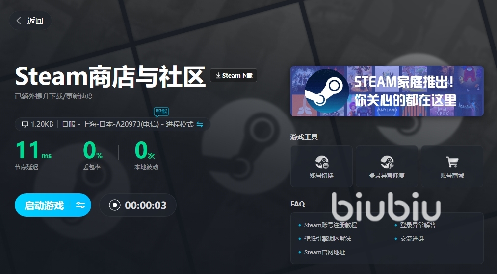 大家在體驗(yàn)神之浩劫2的時(shí)候,是需要去登陸Steam的,如果能有軟件來直接優(yōu)化該游戲平臺(tái),那么不僅更新和下載的速度能夠得到提升,同時(shí)游戲的體驗(yàn)也會(huì)絲滑許多,而biubiu就是一個(gè)有效的解決方案。它主要是通過優(yōu)化數(shù)據(jù)路由,提高數(shù)據(jù)傳輸效率,關(guān)鍵是支持的游戲種類還多,針對(duì)海外服的加速也不在話下。