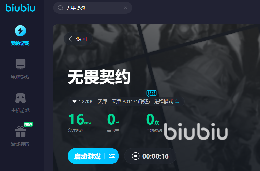 無畏契約是biubiu加速器可以加速的游戲之一,玩家對無畏契約進行網(wǎng)絡(luò)加速的時候,如果自己電腦上有這款游戲的話,在biubiu的:“我的游戲”板塊可以自動檢測出游戲,點擊就可以進行游戲加速,開啟網(wǎng)絡(luò)加速之后就可以享受專屬的游戲網(wǎng)絡(luò),讓玩家的游戲體驗更好。