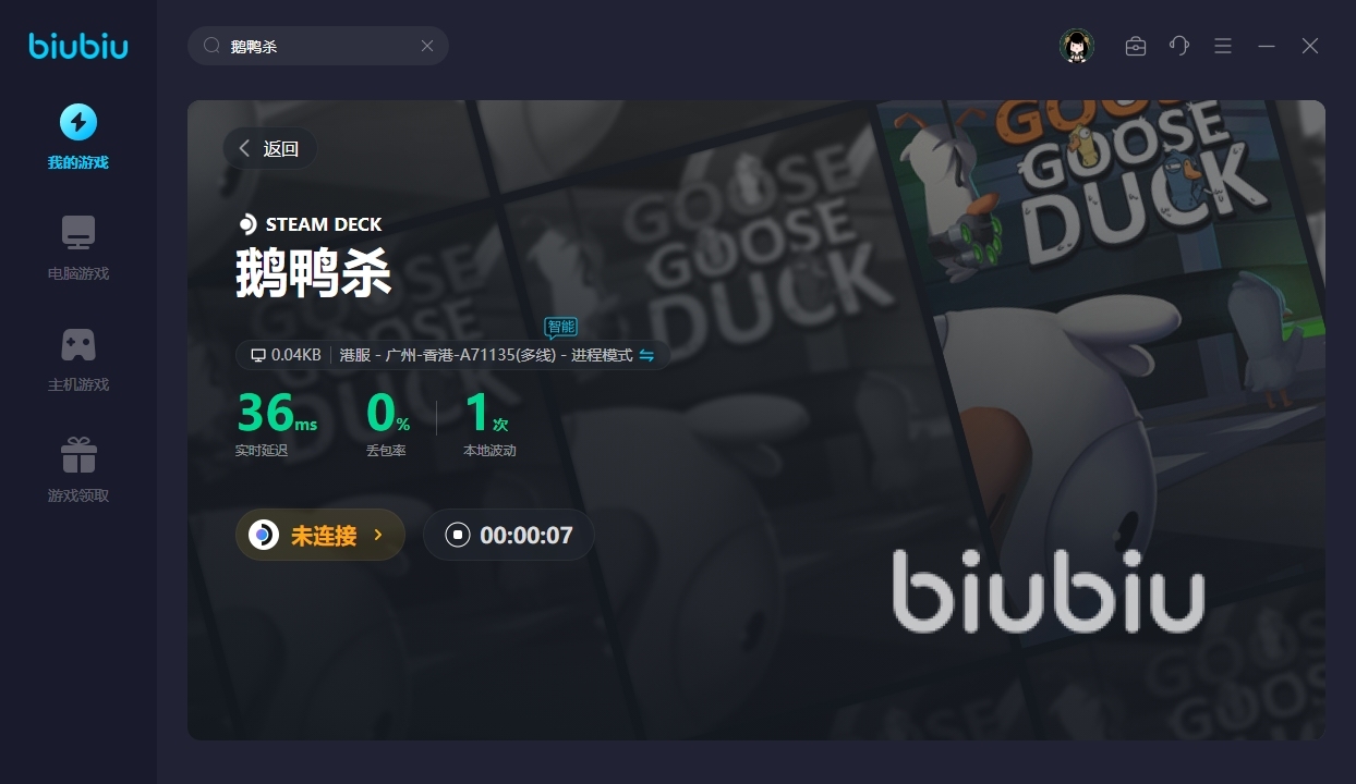 在游戲的加速過程中,大家還可在加速界面查看具體的延遲以及丟包等數(shù)據(jù),由于鵝鴨殺體驗(yàn)的玩家數(shù)量眾多,服務(wù)器崩潰等情況也是時(shí)常會(huì)發(fā)生,所以它通過專屬的內(nèi)網(wǎng)傳輸通道來為大家進(jìn)行穩(wěn)定,更是帶來了智能的節(jié)點(diǎn)切換服務(wù),讓玩家的游戲體驗(yàn)更加流暢。