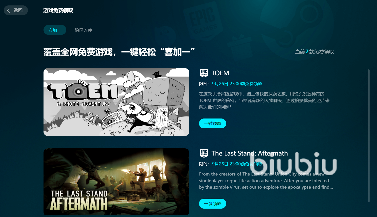綜上所述,超低延遲Epic加速器分享完了,biubiu就是助力您暢游Epic平臺(tái)的理想伙伴。希望這份推薦能為您的游戲之旅增添一份順暢與樂(lè)趣。最后,這款工具還推出了頭部爆款輪流限免的活動(dòng),這跟Epic的經(jīng)典喜加一活動(dòng)有著異曲同工之妙,大家不妨也來(lái)關(guān)注吧。