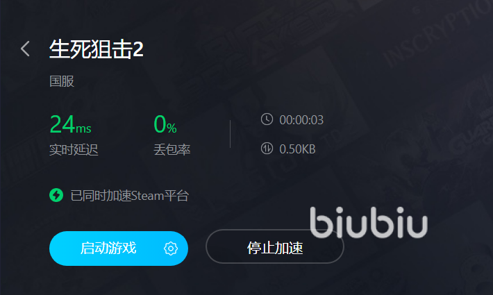 以上就是生死狙擊2用什么加速器的全部介紹了,看完的小伙伴們不知道明白沒有,其實很簡單的,對于網(wǎng)絡情況的優(yōu)化肯定要趁早,不然到時候可能玩什么游戲都會卡頓的,biubiu加速器值得一試哦。
