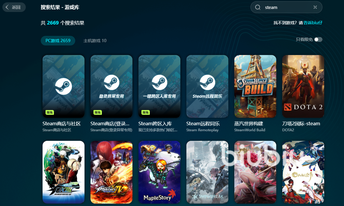 還有一項(xiàng)不管是新老用戶們都可以使用一次的兌換碼活動(dòng),只要打開軟件,在其中輸入【biubiu不卡頓】就可以使用了。這個(gè)活動(dòng)贈(zèng)送的免費(fèi)加速時(shí)間為三天,在這段時(shí)間里,絕對(duì)會(huì)讓玩家們從多個(gè)方面感受它對(duì)游戲體驗(yàn)的提升以及穩(wěn)定好用的效果。在通過(guò)以上方式進(jìn)行操作后,相信肯定會(huì)給各位朋友們帶來(lái)全新的使用體驗(yàn)以及順暢感受。如果小伙伴們?cè)趲?kù)中沒(méi)有找到自己喜歡的游戲,也可以嘗試向官方反饋。