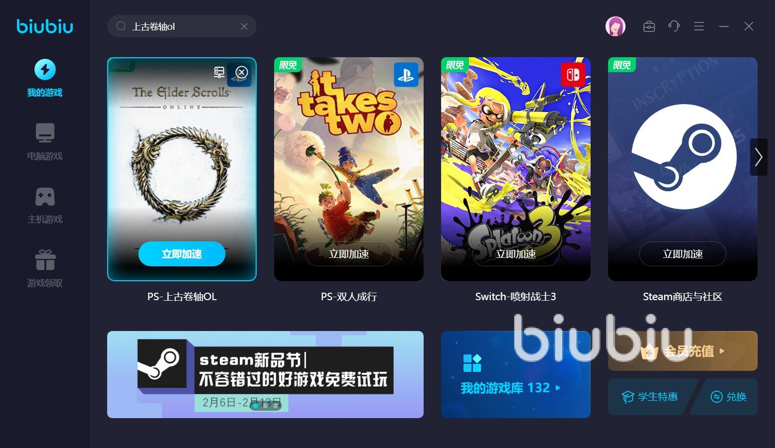 在電腦上玩上古卷軸ol可能會(huì)遇上很多未知的問題,主機(jī)版本玩起來就省事兒多了,不用費(fèi)時(shí)費(fèi)力的折騰,也能有不錯(cuò)的體驗(yàn)。針對(duì)主機(jī)端游戲,平臺(tái)也推出了專門的加速服務(wù),就以這個(gè)游戲?yàn)槔?,大家可以在?yīng)用中搜索到游戲?qū)俚募铀偃肟?,接著點(diǎn)擊立即加速就能啟動(dòng)這個(gè)功能,整體操作起來很輕松。