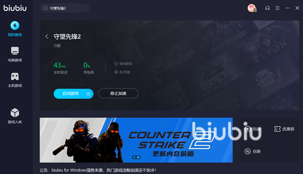 Biubiu這款加速器就專為解決游戲過程中遇到的諸多網(wǎng)絡(luò)狀況而生,點擊上方鏈接就可以直接下載安裝。打開之后需要我們做的是注冊登錄平臺賬號,隨后進(jìn)行簡單的認(rèn)證就可以使用了。我們可以選擇點擊左側(cè)的游戲分類來找到自己正在游玩的游戲,使用搜索框的話更是能夠快速定位哦。這款工具支持的版本非常多,大家可以看到除了PC版本的OW2之外,目前已經(jīng)上線的三大主機版本都是可以使用的,而且還是免費的!這也是biubiu的一大特色之一,大部分的主機平臺游戲不需要開會員就可以直接加速,請把良心打在公屏上。