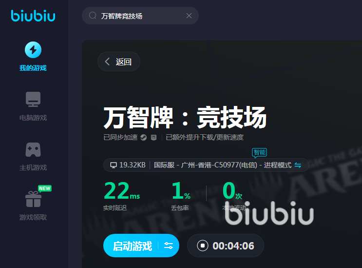 以上就是萬智牌競技場閃退怎么辦全部內(nèi)容了,掌握這個(gè)方法以后趕緊來試一試吧,玩其他的游戲遇到閃退同樣也能用同個(gè)方法來解決,biubiu就是這樣一個(gè)強(qiáng)大又全能的軟件,支持游戲非常多,歡迎大家下載體驗(yàn)。