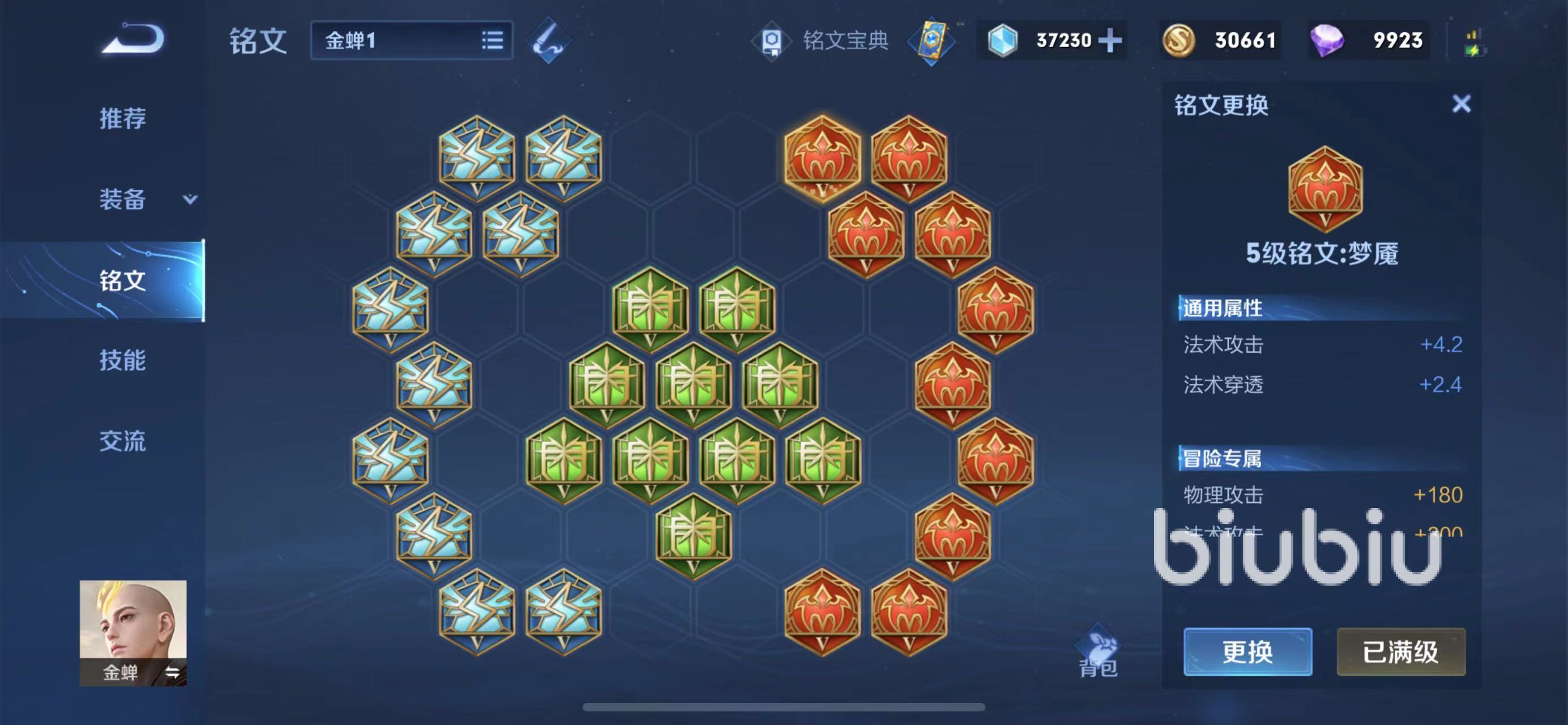 藍(lán)色銘文建議全部出狩獵,能夠增加高額的移速,一級(jí)攻擊速度。至于綠色銘文的話,全部出心眼。能夠增加法術(shù)穿透以及攻速,讓他更頻繁地打出傷害。至于紅色銘文的話,全部出夢(mèng)魘。進(jìn)一步提升法穿以及法術(shù)攻擊力。輕松打出大量的傷害,以及不錯(cuò)的控制效果。