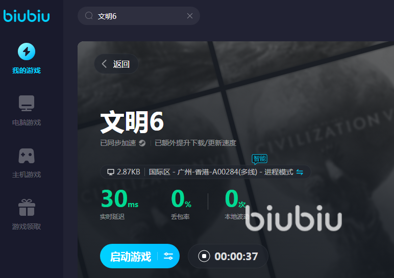 文明6不僅繼承了之前幾部作品的優(yōu)點(diǎn),還改良了游戲畫(huà)質(zhì),增加外交、文化等多種內(nèi)容,如果大家玩的主機(jī)版,還可以通過(guò)觸屏來(lái)操作游戲,比之前省事了很多。小編在用了biubiu加速器以后發(fā)現(xiàn)真的沒(méi)有卡頓了,而且它操作起來(lái)很簡(jiǎn)單,只要點(diǎn)擊藍(lán)色按鈕系統(tǒng)就會(huì)自動(dòng)加速,甚至不需要用戶來(lái)選擇節(jié)點(diǎn),方便得不得了。