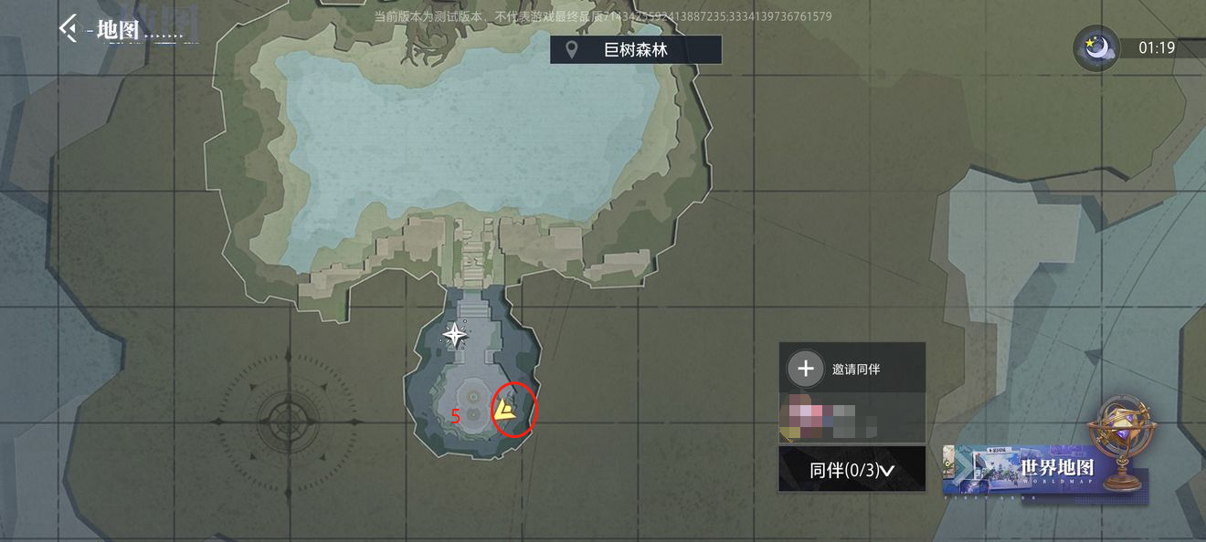 5、寶箱5:寶箱5位于古代巨樹的最西北角,沿著第三個寶箱地圖的位置一直往南邊走,走到最南邊有棵大樹,低下有個第五個寶箱。