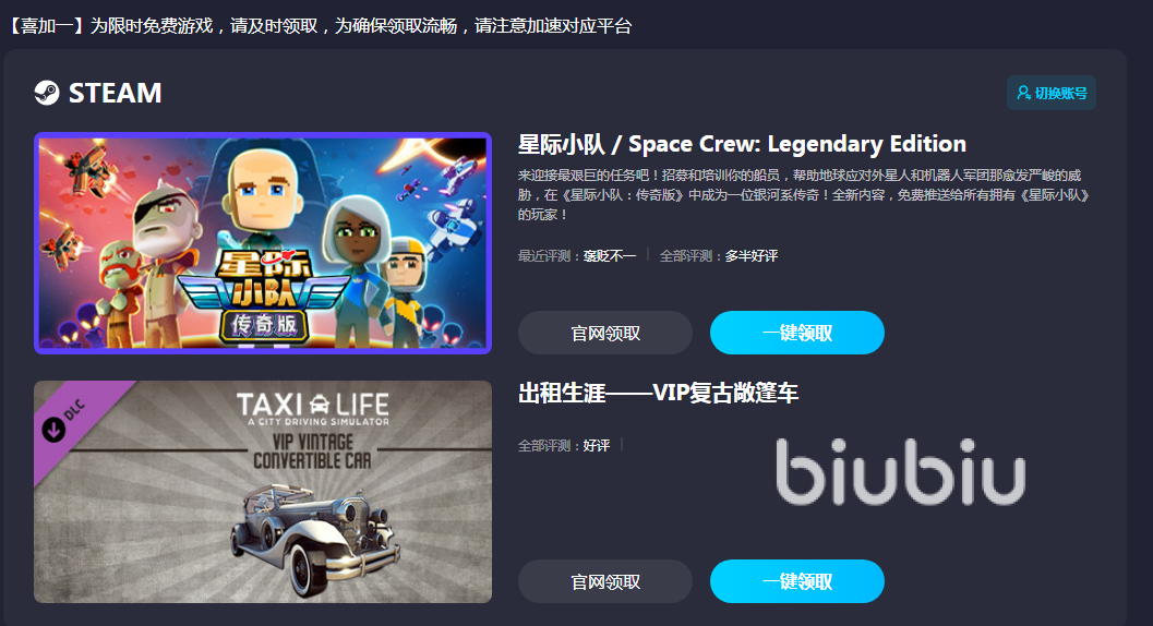 小伙伴們還可以關(guān)注biubiu里面的游戲領(lǐng)取,在游戲領(lǐng)取里面有好玩又免費(fèi)的游戲,關(guān)注上新就會(huì)收到提醒,只要根據(jù)系統(tǒng)提示操作就能領(lǐng)到游戲了。一鍵入庫(kù)游戲非常方便,大家之后也能通過biubiu來(lái)管理自己本地玩過的游戲。
