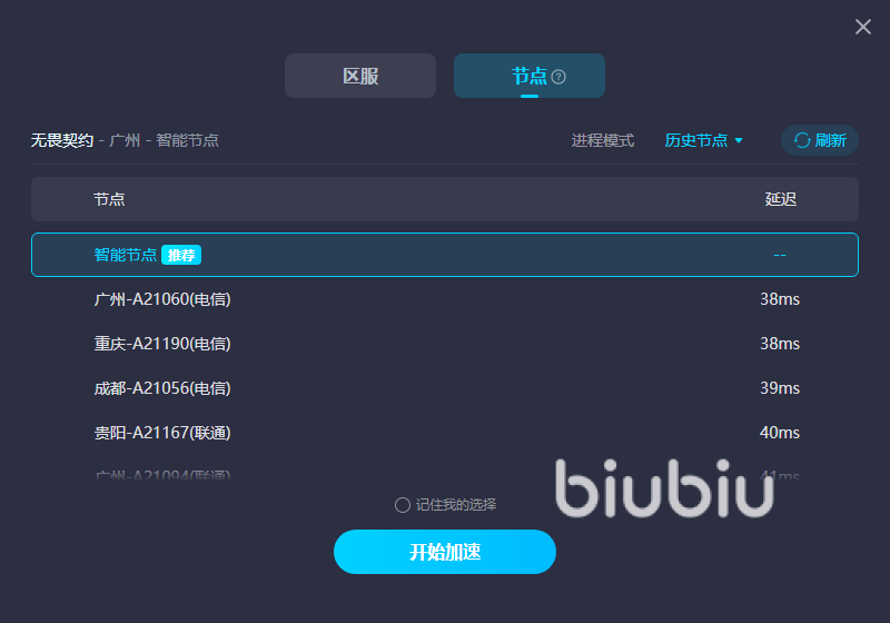 今天關(guān)于無畏契約掉幀卡頓怎么解決的這個(gè)問題,以上的內(nèi)容中就已經(jīng)為大家提供好答案了,而大家要做的則是利用好biubiu加速器來針對不穩(wěn)定的網(wǎng)絡(luò)進(jìn)行優(yōu)化,自然也就可以從源頭把卡頓、掉幀一類的現(xiàn)象給輕松解決好。