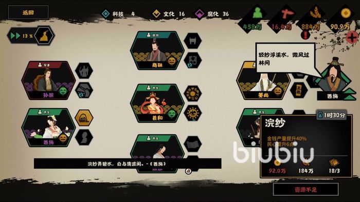 其他的三個名臣目前在劇本當中還沒有登場,大家可以耐心期待一下,不過這些早就上線了,技能方面小伙伴們也是可以看到的。其中西施主要是可以使用美人計改變政策,范蠡則是比較注重發(fā)展的,可以獲得穩(wěn)定的經(jīng)濟提升。