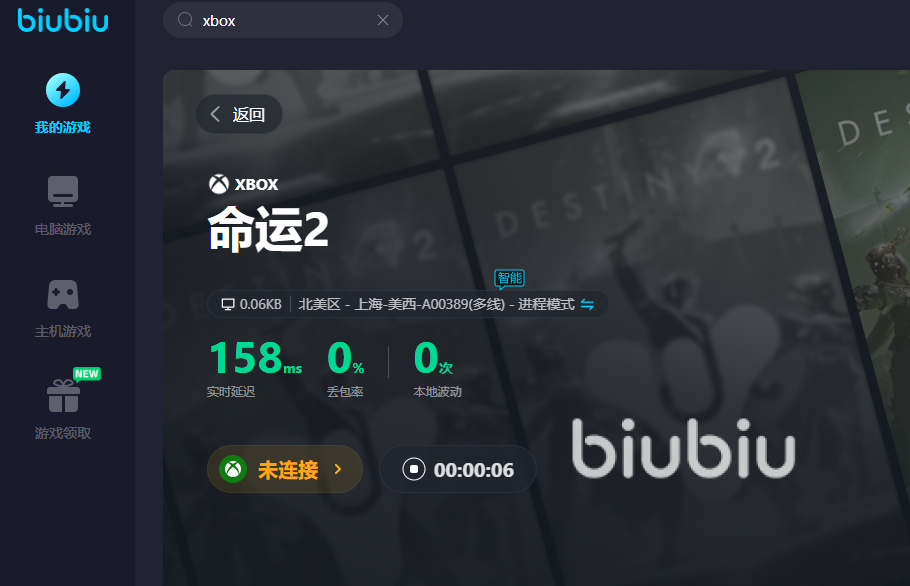 另外很多登錄xbox平臺的游戲都可以享受到biubiu的加速效果,只要根據(jù)提示進行連接就可以了,開啟加速效果之后就可以感受到游戲幀率明顯提升了,延時也被降低了很多,不管做什么操作都會感覺很流暢,這樣完成任務的效率就提升了不少。比如說玩命運2的時候就有很多戰(zhàn)斗環(huán)節(jié),用了biubiu就可以讓操作變得更輕松,打怪更效率。