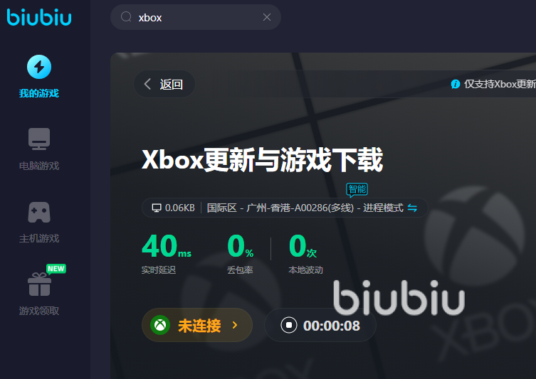 在搜索欄是可以輸入xbox的,biubiu對這個平臺是可以起到加速效果的,尤其是下載游戲的時候可以提升下載速度高達500%,不管再大的游戲都能很快下載安裝完成,開始體驗的過程。