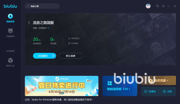 這款加速工具使用方法非常簡單,在軟件中直接鍵入流放之路游戲名稱就能夠檢索到不同的版本,除了PC上的國服和國際服版本之外,也可以看到另外兩個主機平臺的版本。大家或許會注意到,除了國際服是需要開通會員才可以加速之外,國服和主機版本都是免費就能夠使用加速功能的,這也是biubiu受到大家歡迎的原因之一,對于一些國服玩家和主機玩家來說非常良心。