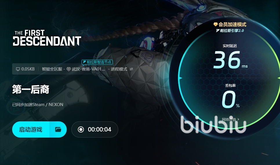 另外,新用戶如果是首次注冊(cè)的話,也是可以直接獲取到24小時(shí)的加速時(shí)長(zhǎng),這些都是免費(fèi)的,注冊(cè)成功即可獲取,不需要額外的步驟操作。在領(lǐng)取到加速機(jī)會(huì)之后,我們就可以在biubiu的首頁(yè)搜索游戲名稱,然后就可以將其添加到游戲庫(kù)內(nèi)快速開啟加速啦,而在加速完成,我們也可以直接在詳情界面啟動(dòng)游戲,同時(shí)詳情界面還會(huì)為我們展示當(dāng)前的加速狀態(tài),包括延遲以及丟包率都是可以更直觀的看到。