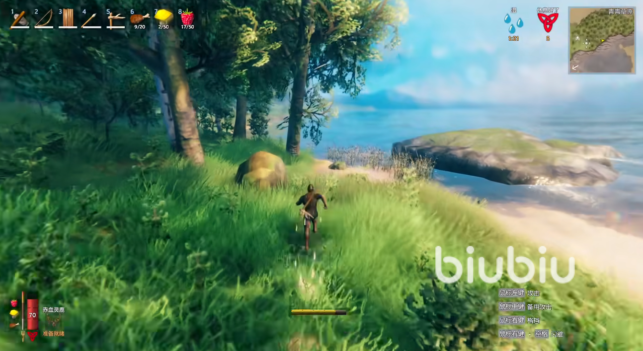 這款游戲上手比較容易,開局玩家從一個(gè)荒蕪的田野里面出生,玩家可以使用左上角背包里面的物品進(jìn)行合成,不論是劈柴的斧頭還是挖礦的鎬子都有。點(diǎn)擊烏鴉的圖案,可以看到游戲記錄,大致了解游戲進(jìn)程與教程幫助。游戲內(nèi)置有技能面板,跳躍、跑步以及各種作戰(zhàn)戰(zhàn)術(shù)都有能力熟練度,不同等級(jí)會(huì)對(duì)屬性產(chǎn)生影響。準(zhǔn)備好充足的食品與道具,玩家就可以探索更加遠(yuǎn)的地區(qū),打敗boss獲得高稀有度戰(zhàn)利品。而且這款游戲獨(dú)特之處還有PVP系統(tǒng),一邊冒險(xiǎn)探索,一邊要警惕來自其他玩家的傷害,讓你收獲緊張刺激的樂趣。