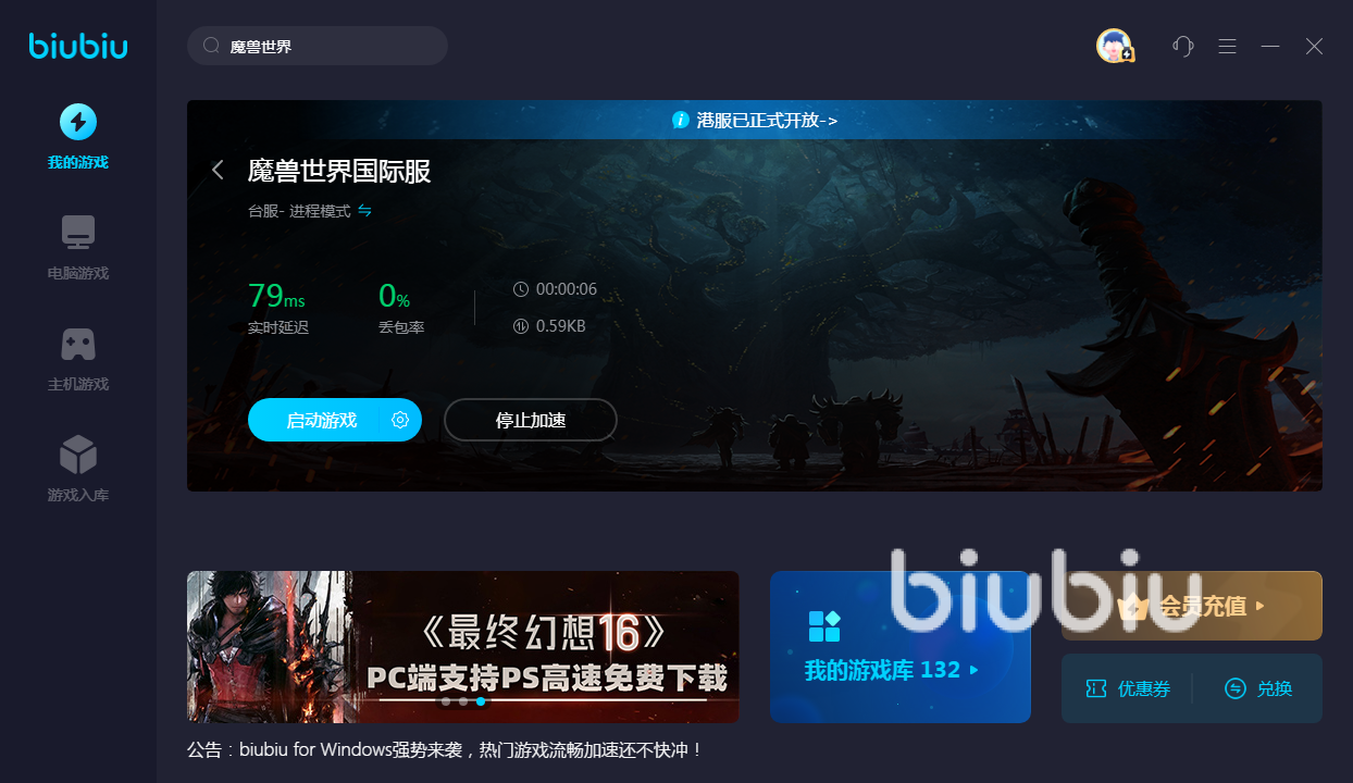 目前國服已經(jīng)正式關(guān)閉,如果想要繼續(xù)體驗,可以登錄至臺服,港服,歐服,美服等不同服務(wù)器繼續(xù)征戰(zhàn)。很多玩家在登錄的時候都出現(xiàn)了失敗問題,或者是登錄進(jìn)去以后延遲太高,此時biubiu加速器就能夠發(fā)揮出自己應(yīng)有的作用。這是一款專門為大型端游所準(zhǔn)備的加速軟件,涵蓋了網(wǎng)絡(luò)優(yōu)化,跨服登錄,攻略資訊提供等一系列綜合服務(wù)。只需要在資源庫中搜索到對應(yīng)游戲,并且添加到列表中,選擇好自己要登錄的服務(wù)器之后,點擊加速就能直接打開客戶端。