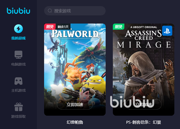 而且這款平臺也非常良心,有大部分的國服、主機、掌機游戲都開啟了限時免費加速的長期活動,認(rèn)準(zhǔn)左上角的限免標(biāo)志就可以了,不需要開通會員也可以盡情優(yōu)化。而且有一些比較熱門、剛剛上線的新作也會很快推出對應(yīng)的優(yōu)化加速功能,有一些也會有限時的免費加速福利可以使用哦,比如最近推出的類寶可夢游戲幻獸帕魯,使用biubiu就可以在試玩過程中為游戲進行網(wǎng)絡(luò)優(yōu)化了!