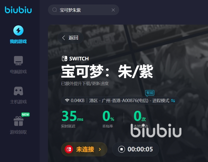 來(lái)源: 極光 作者: 小橘子 2024年07月09日 11:46這個(gè)游戲是寶可夢(mèng)系列游戲之一,游戲中收集寶可夢(mèng)來(lái)開(kāi)展不同的對(duì)戰(zhàn)冒險(xiǎn)。游戲中還有很多的趣味互動(dòng)讓玩家有一個(gè)愉悅的游戲氛圍。不過(guò)寶可夢(mèng)朱/紫卡頓怎么解決,游戲目前只支持在switch端進(jìn)行登錄,在游戲運(yùn)行過(guò)程中難免會(huì)因?yàn)榫W(wǎng)絡(luò)延遲或者是服務(wù)器連接不穩(wěn)定而出現(xiàn)游戲卡頓,biubiu大加速就能很好的解決這些問(wèn)題。