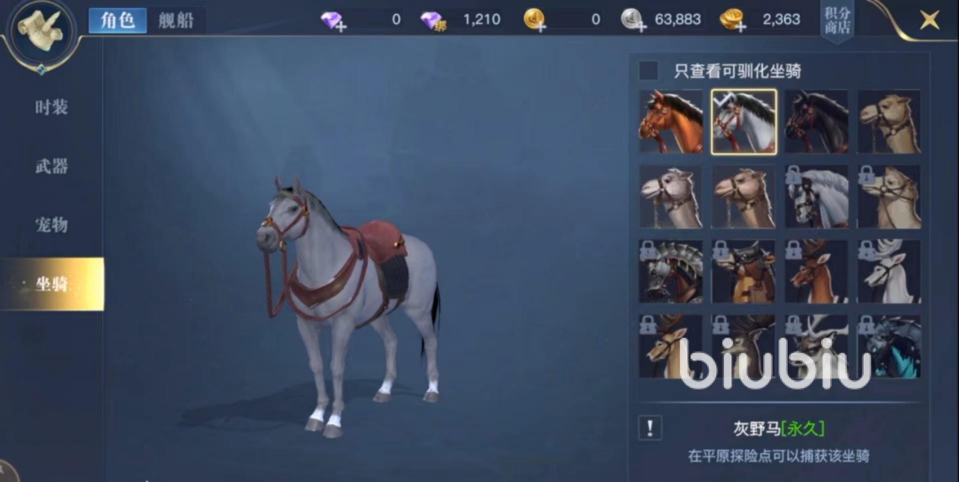 玩家解鎖后,即可在主界面看到坐騎的板塊,點(diǎn)擊進(jìn)入坐騎界面后。這里有著游戲內(nèi)所有的坐騎的圖鑒,只要玩家達(dá)到坐騎對(duì)應(yīng)的獲取要求,點(diǎn)擊馴服角色即可自動(dòng)前往坐騎出現(xiàn)的地點(diǎn)。