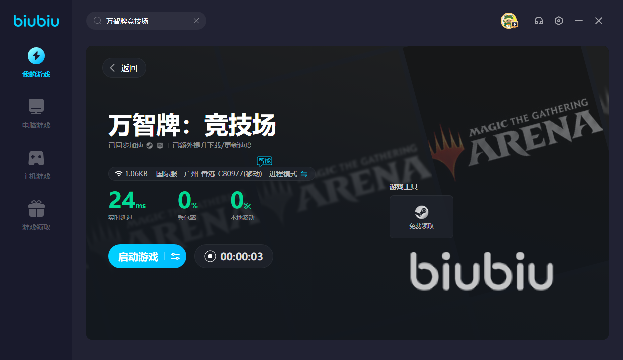 萬智牌中的競技場來自于其他地區(qū),所以目前暫時(shí)還沒有國服。要是想加入全新的卡牌競技場,大家需要使用biubiu。有效加速以后,才能打開進(jìn)入競技場的大門。沒玩過的朋友,可以通過新人領(lǐng)取24H的免費(fèi)加速福利試玩一波。另外新老用戶都可使用【biubiu不卡頓】,即可繼續(xù)獲取三天免費(fèi)加速,繼續(xù)嗨玩享不停。要是決斗途中卡頓的話,那就不能看清對方的卡組以及所出卡牌。有了加速器后,即可輕松掌握戰(zhàn)斗節(jié)奏,不錯(cuò)失任何一個(gè)細(xì)節(jié)。