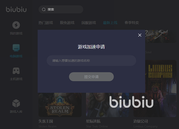 這款加速器目前支持的游戲作品還是很多的,從大家熟知的一些國服網(wǎng)游到Steam、EA、NS等平臺的聯(lián)機(jī)作品一應(yīng)俱全。但是如果大家發(fā)現(xiàn)自己游玩的作品不在其中的話,也可以隨時向平臺反饋進(jìn)行加速的申請,這樣就有機(jī)會使用biubiu來改善游戲的體驗了!