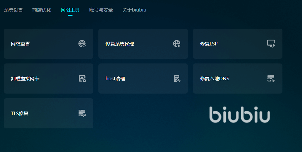 除了網(wǎng)絡(luò)因素,游戲掉線還跟電腦網(wǎng)卡設(shè)備有關(guān),biubiu給大家準(zhǔn)備了實(shí)用工具包,里面有各種工具可以修復(fù)不同情況的電腦網(wǎng)卡故障,像網(wǎng)頁(yè)打不開、加速顯示異常這些情況都能解決,大家就不用到處找人來(lái)幫忙修電腦了,在工具箱里輕松點(diǎn)擊就能修復(fù)網(wǎng)絡(luò)異常,修復(fù)完畢后大家重新進(jìn)入游戲,就不會(huì)出現(xiàn)掉線無(wú)法重連這樣的情況了。