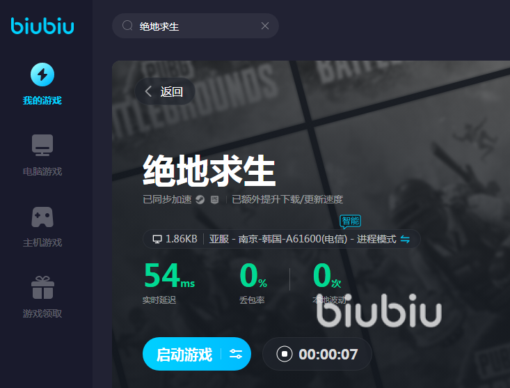 有關(guān)PUBG閃退怎么辦就分享到這里了,小伙伴們是不是對biubiu也有了初步了解呢?現(xiàn)在就來下載軟件跟它來一個親密接觸吧,它可以給上萬款游戲加速,而且性能特別穩(wěn)定,是不可多得的多功能加速器,體驗過后相信你們一定會滿意的。