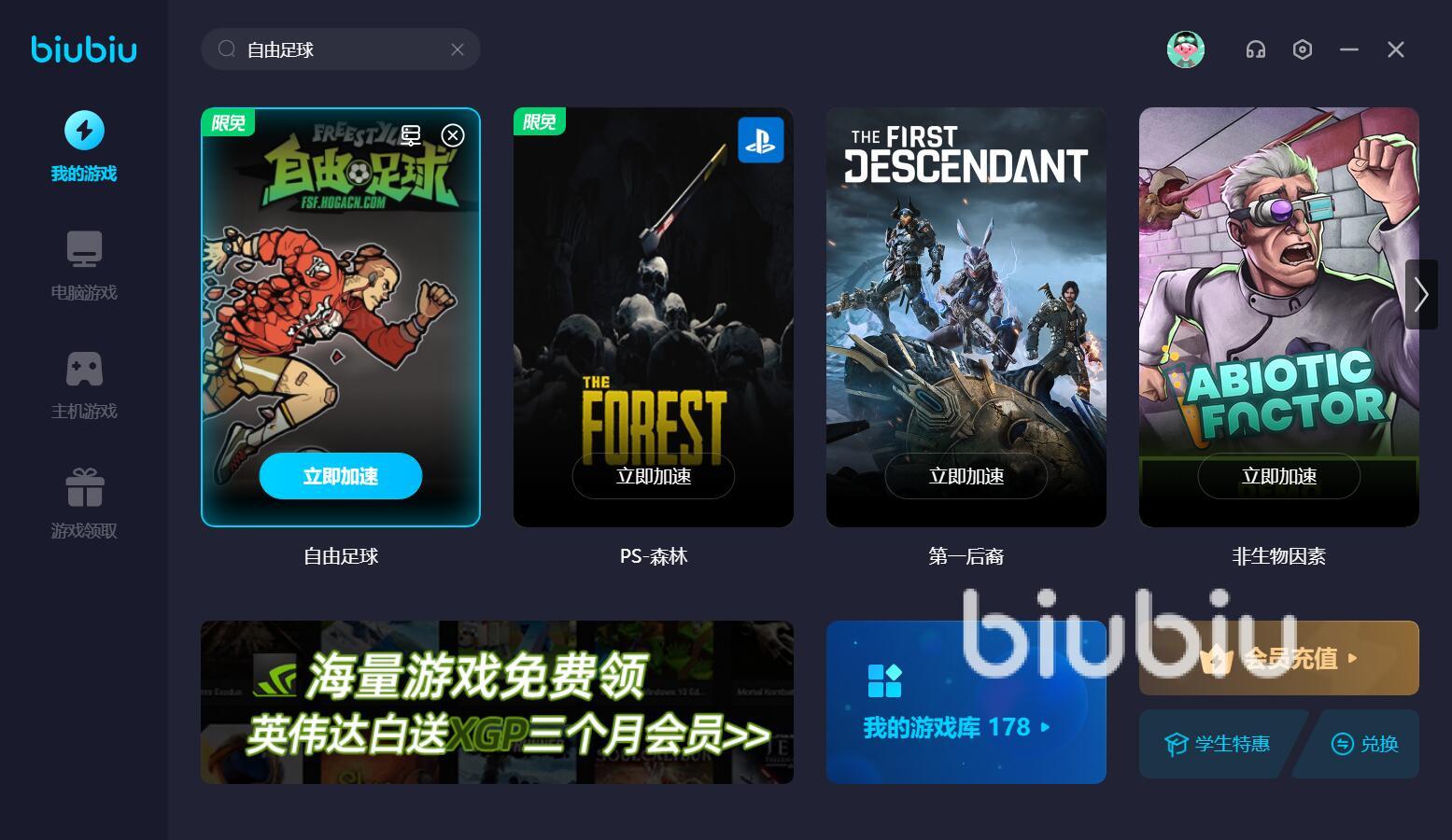 平臺(tái)還會(huì)推出一些限時(shí)免費(fèi)的活動(dòng),帶有限免標(biāo)志的游戲,大家無需開會(huì)員,也能享受穩(wěn)定流暢的加速體驗(yàn)。此外,平臺(tái)內(nèi)還上線了多個(gè)福利活動(dòng)去回饋用戶,如果你是新用戶的話,那么注冊體驗(yàn)就能獲得24小時(shí)的免費(fèi)加速時(shí)長,還有一個(gè)活動(dòng)是適用于所有用戶的,只需輸入專屬兌換碼【biubiu不卡頓】,就能領(lǐng)到3天的加速時(shí)長。