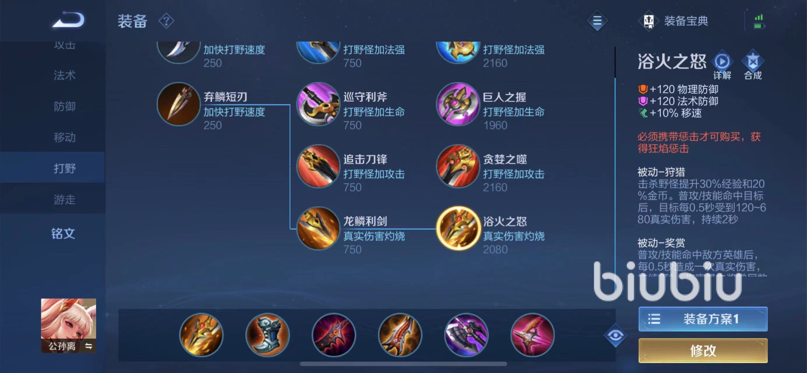 在升級(jí)完大野刀之后。公孫離在出一把攻速鞋。 之后再出一把末世,增加攻速以及吸血能力。接著再出一個(gè)暗影戰(zhàn)斧,減少自身技能的冷卻時(shí)間,讓她變得更靈活。然后再出一把無盡之刃,增加暴擊率以及攻速、攻擊力。最后再補(bǔ)一把破曉,提升打坦克能力即可。