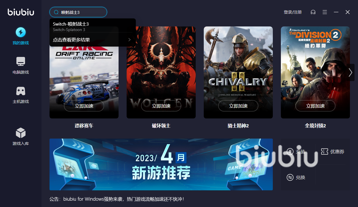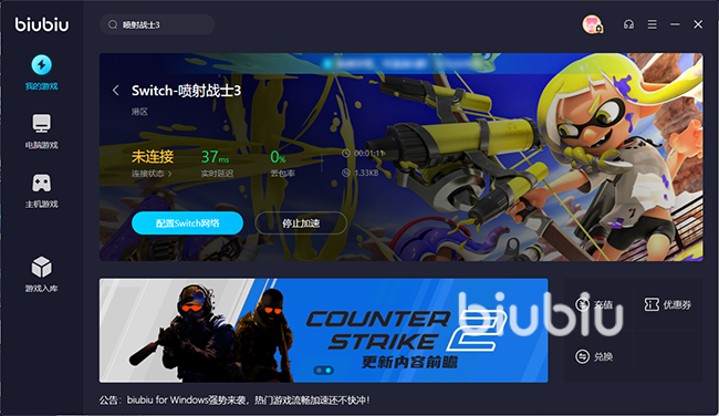 由上可見,噴射戰(zhàn)士3加速器推薦首選biubiu,這一工具對新用戶和舊用戶都非常友好。針對新用戶推出了限時免費使用24小時的福利,暢享一切軟件的功能。此外,軟件針對新用戶上線第一次充值四折優(yōu)惠活動。軟件會員們享受福利還有很多,比如部分平臺游戲限時免費等。