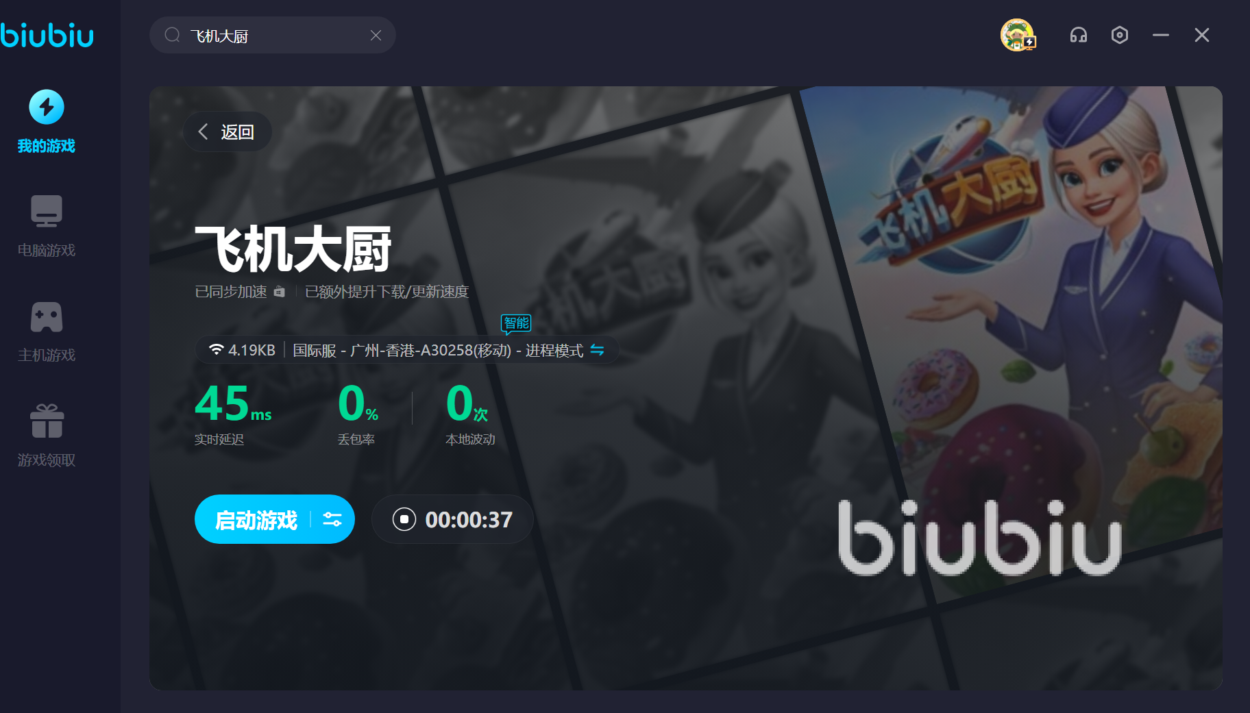 飛機(jī)大廚游戲中玩家將扮演一位頂級(jí)大廚,了解各國(guó)客人的喜好,并學(xué)習(xí)足夠多的技巧從而制作出一道又一道的美食,獲得顧客的認(rèn)可,給自己留下一個(gè)比較好的口碑,有時(shí)候訂單會(huì)很多,這很考驗(yàn)玩家的手速,只有滿足大部分顧客的點(diǎn)餐需求才能得到一個(gè)比較好的評(píng)價(jià),可要是過程中突然出現(xiàn)閃退,會(huì)直接讓玩家的評(píng)分降到很低,讓玩家的游戲體驗(yàn)大幅度下降,使用biubiu能保證網(wǎng)絡(luò)的穩(wěn)定,從而不會(huì)大幅度的閃退,并且新人在注冊(cè)后便獲24小時(shí)免費(fèi)加速,以及新老用戶使用兌換碼【biubiu不卡頓】可獲3天免費(fèi)的使用權(quán)哦!