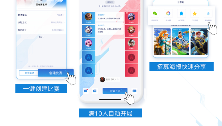 作為一款面向大眾玩家的辦賽系統(tǒng),王者賽寶在最大限度上降低了游戲的辦賽門檻,保障了用戶的電競體驗。在王者賽寶中,你可以一鍵輕松舉辦賽事,辦賽、參賽、觀賽都可以一站式完成。還支持跨平臺競技,為玩家提供全英雄、滿級銘文的特權(quán),讓每一位選手都能夠擁有平等的起點。王者賽寶還提供了自動化的能力支持,直轉(zhuǎn)播、解說都可一鍵完成。