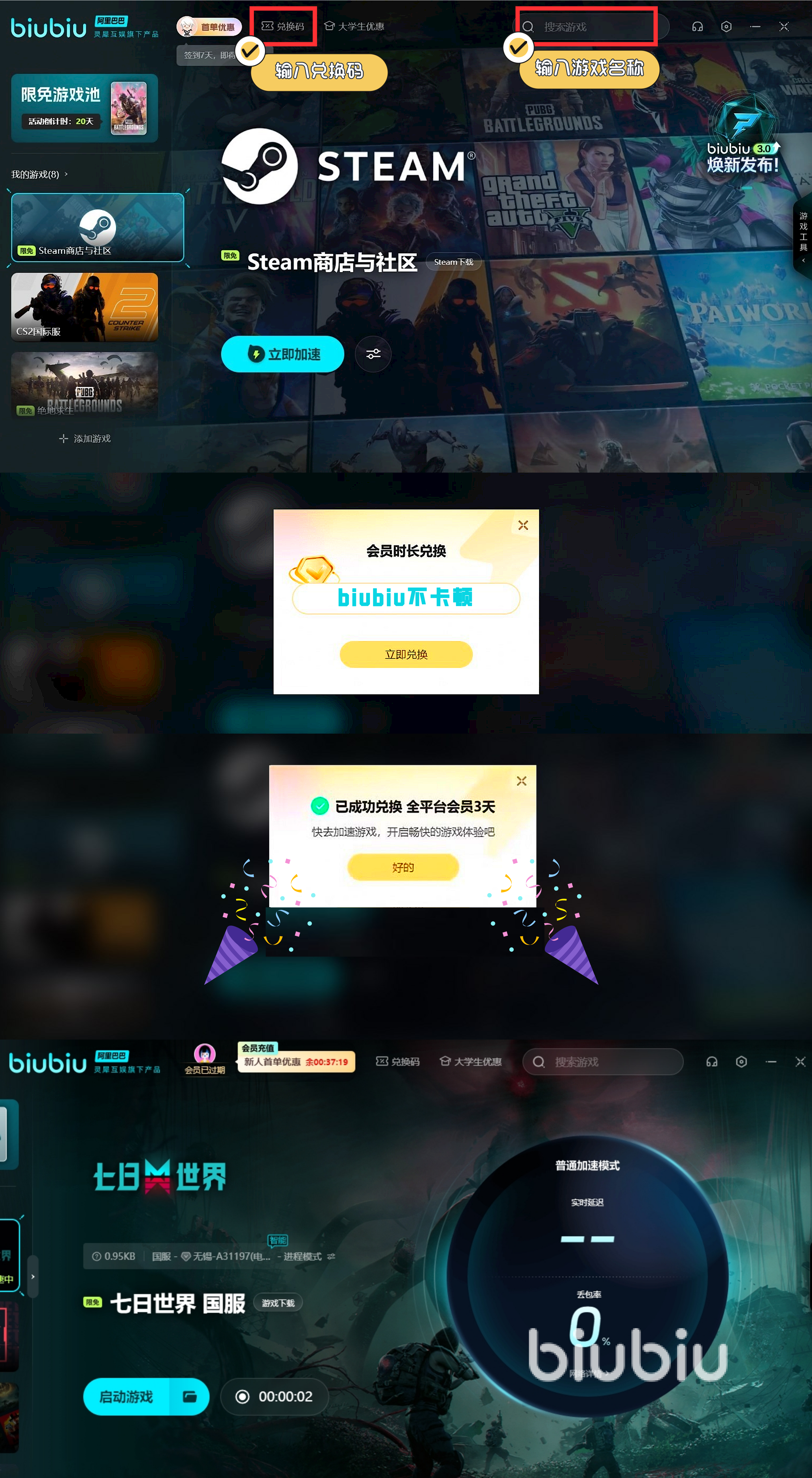 現(xiàn)在新用戶使用的福利是很高的,大家要是注冊的新賬號,登錄就有免費的24小時加速時間用,加上兌換碼活動也是新老用戶都能參與的,兌換得到的就是72小時免費的加速時間,這個福利碼是【biubiu不卡頓】哦。新人全部活動參與完,是有96小時免費使用時間的。