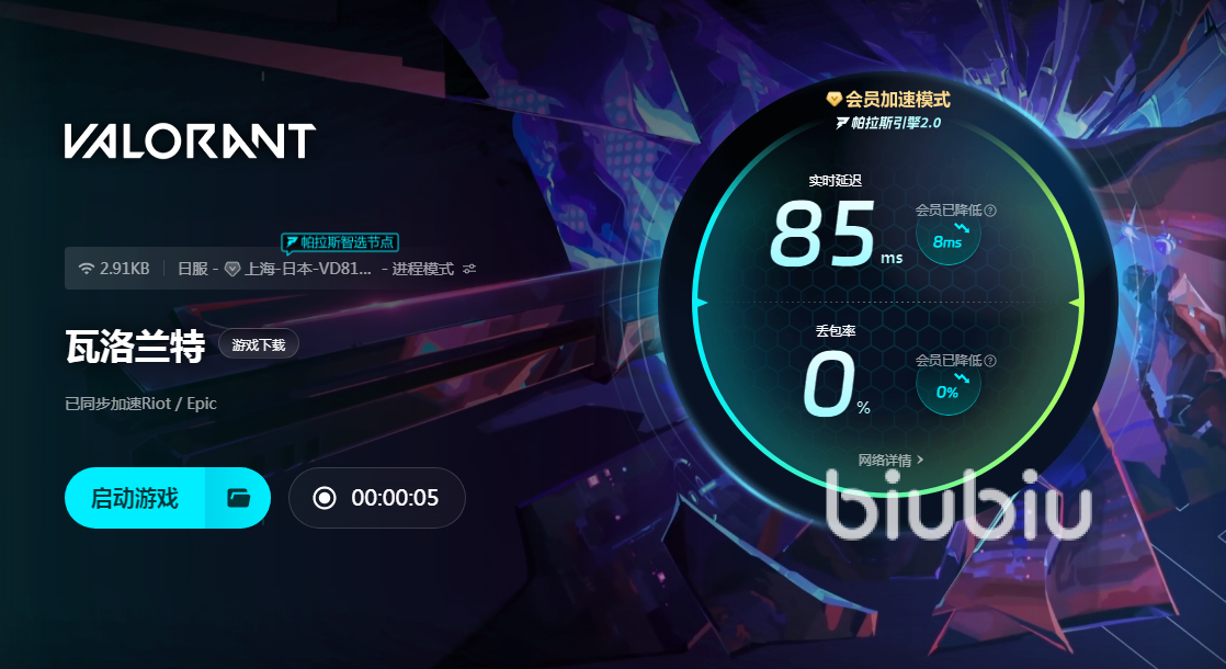 看完小編對biubiu這些功能的介紹之后,相信大家就已經(jīng)了解瓦洛蘭特加速器哪個好了吧,有了biubiu這些強大功能的加持下,大家就可以放心去登錄游戲,即使同服玩家過多也不用擔心延遲高影響自己的操作,可以輕松打出各種炫酷的動作。