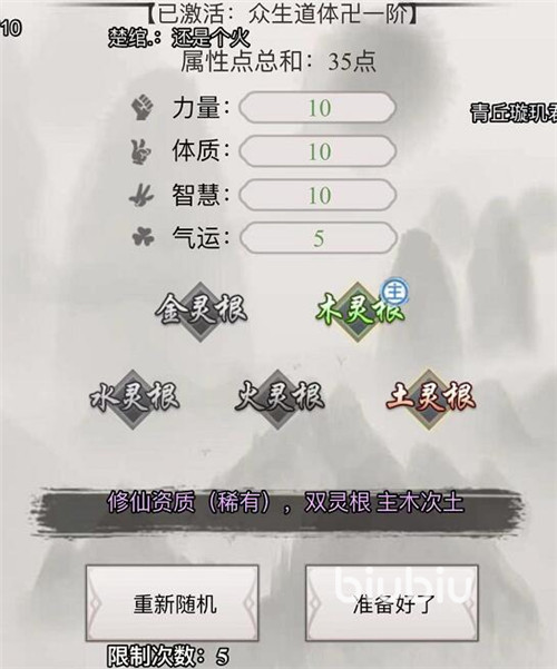那么要如何玩好這款修仙游戲呢?首先我們在進(jìn)入修仙世界之前選擇好靈根的資質(zhì),24小時是逆天最好,刷不出來就是稀有,這樣起始的屬性點(diǎn)也會高,在修仙過程中也會獲得較高的修為加成匹配到較好的功法。