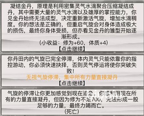 其次在做出一些選擇的時候,盡量選擇你屬性點(diǎn)最高的那個選項(xiàng),有了單個屬性點(diǎn)最高容易在之后的戰(zhàn)斗中獲勝。其他一些事件的選擇則是遇到危險(xiǎn)就跑,不明白的帶回家給舒服看看,有好奇心的就不作死不會死,這樣基本就可以在修仙世界中熬死很多的對手了,當(dāng)其他7位小伙伴都隕落之后你就成功的吃雞了。