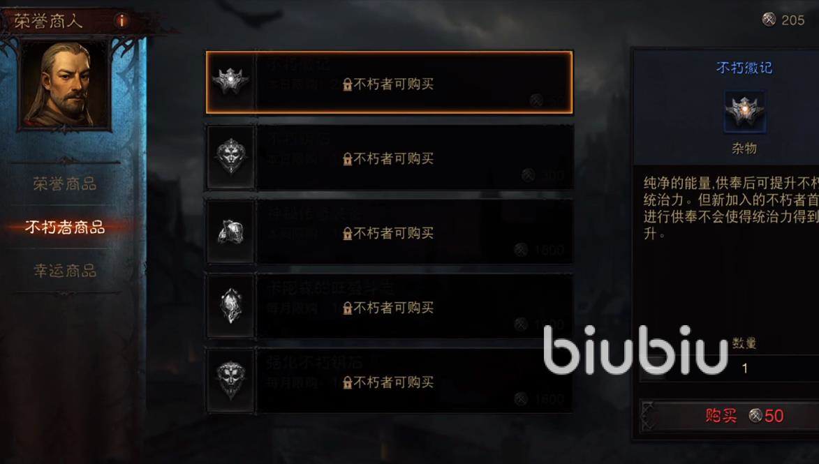 2、不朽者商品:如果是不朽者陣營的,那么可以換取一些特殊道具。不過這里的裝備是有等級限制的,如果想要得到更高品質(zhì)的裝備,就需要先去提升等級。·