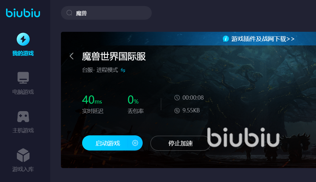 想要為開服的魔獸加速的話,可以先注冊(cè)一下biubiu,這時(shí)候新人可免費(fèi)加速24小時(shí)。之后進(jìn)入軟件頁(yè)面之后直接搜索魔獸兩個(gè)字就會(huì)跳出魔獸世界的游戲,并且加速過程非常簡(jiǎn)單,你只需要先點(diǎn)擊一下右上角的服務(wù)器選擇然后點(diǎn)擊臺(tái)服之后,接著再點(diǎn)擊一下一鍵加速就可以為游戲提速。接著一鍵打開游戲,就能在高速網(wǎng)絡(luò)下登錄臺(tái)服魔獸。此外,魔獸的頁(yè)面非常大,如果網(wǎng)速不夠好的話,需要等待很長(zhǎng)時(shí)間才能進(jìn)入。此刻biubiu提供的高速網(wǎng)絡(luò),那個(gè)助你迅速加載每一個(gè)大型游戲場(chǎng)景。這樣當(dāng)你進(jìn)入下一個(gè)游戲畫面的時(shí)候,就可以節(jié)省大量的時(shí)間。