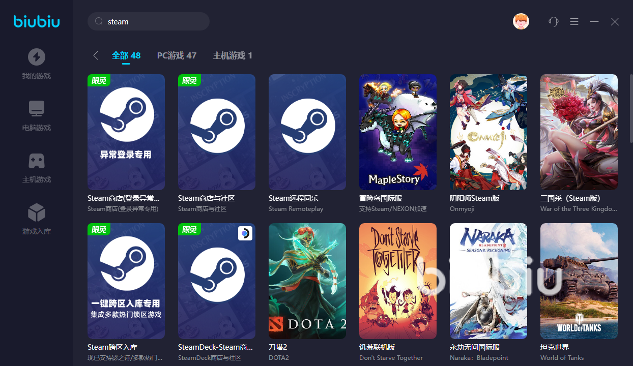 如果大家有對比過就會發(fā)現(xiàn),很少有免費試用時間如此長的加速軟件,現(xiàn)在大部分工具都是只提供了一個小時的試用時間,或者是需要觀看廣告才能獲得幾分鐘的免費使用機會,這其實并不人性化,自己也看不出來效果具體如何,然而Biubiu就不同了,它不僅是為大家提供了超長的試用期限,同時還針對國服的游戲提供了限時的免費加速服務(wù),就單單這一點來說,Biubiu就很是良心,最關(guān)鍵的是,大家使用起來還非常方便,只需去點擊上面的鏈接來安裝即可,然后再去搜索Steam,就能為它開啟加速服務(wù)了。