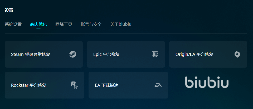 除了給游戲加速,提升游戲下載更新的速度,它還可以解決大家一直困擾的游戲登錄異常、商店報錯還有商店訪問卡頓等問題哦。在商店優(yōu)化里面針對不同的平臺推出不同的優(yōu)化按鈕,它們的使用方法都一樣,只要點擊修復,后臺就會自動工作,還用戶一個全新的運行環(huán)境。