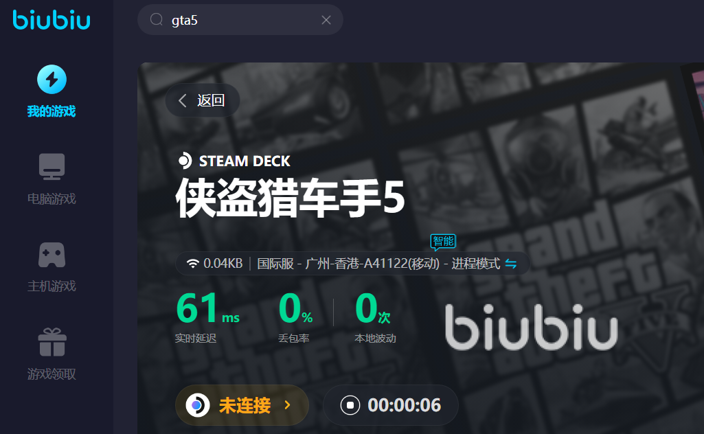 為了能夠保證biubiu加速器能夠滿足大家對于俠盜獵車手這款游戲的加速需求。小編也提前使用biubiu加速器對俠盜獵車手這款游戲進(jìn)行了網(wǎng)絡(luò)加速體驗,它的加速效果是非常穩(wěn)定,且能夠保證長時間的加速,帶給大家更好的游戲體驗的。