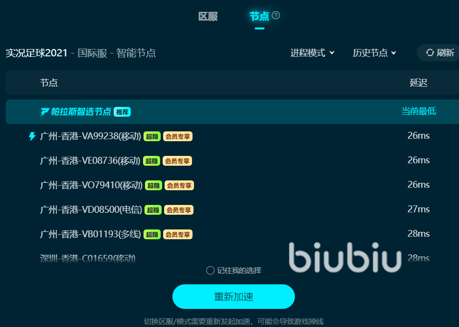 以上就是關(guān)于“實(shí)況2021閃退怎么解決”的全部?jī)?nèi)容,只需要掛上biubiu加速器,就能將各種因網(wǎng)絡(luò)不良問(wèn)題引起的閃退、掉幀、丟包等問(wèn)題,大家趕快體驗(yàn)試試吧。