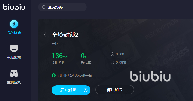 這款軟件很容易上手,它的使用方法堪稱傻瓜式啟動(dòng),就算是第一次用加速器的小伙伴也可以駕馭,只要點(diǎn)擊藍(lán)色的按鈕就可以啟動(dòng)加速了。游戲結(jié)束以后回到軟件界面,再選擇停止加速就可以了。軟件會幫大家清清楚楚記錄加速時(shí)長,本地游戲也會把全境封鎖2加入進(jìn)來,下次可以直接加速,不用重新搜索了。