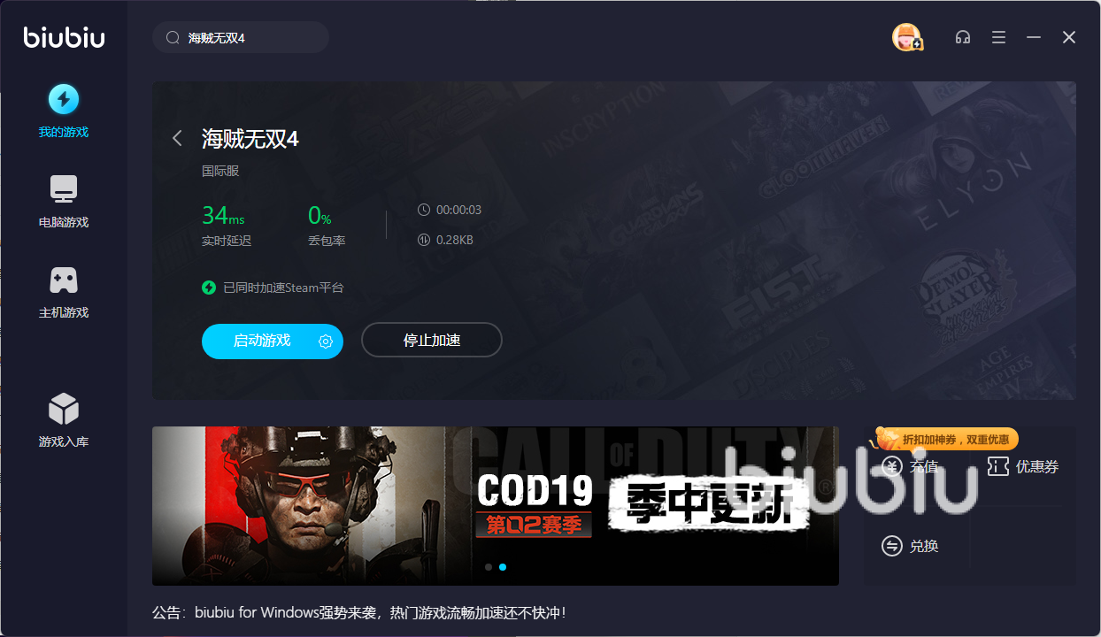 來源: 極光 作者: 果果 2023年03月31日 19:55海賊無雙4除了能讓玩家有個很好的動作體驗外,游戲的劇情也是得到了完美的還原,今天小編就和大家說說海賊無雙4用什么加速器好用,在大家進行游戲里面的技能釋放和動作走位時,如果出現(xiàn)了掉線或者是延遲等問題,是非常影響實際體驗的,甚至還會有任務失敗等不好的情況發(fā)生,需要玩家重頭來過,十分影響自身游戲體驗,并且玩家實際感受也不會好,為了能避免這個問題出現(xiàn),小編建議大家可以去使用biubiu加速器來幫助自己,如此一來也就不用在擔心會出現(xiàn)這些情況了。